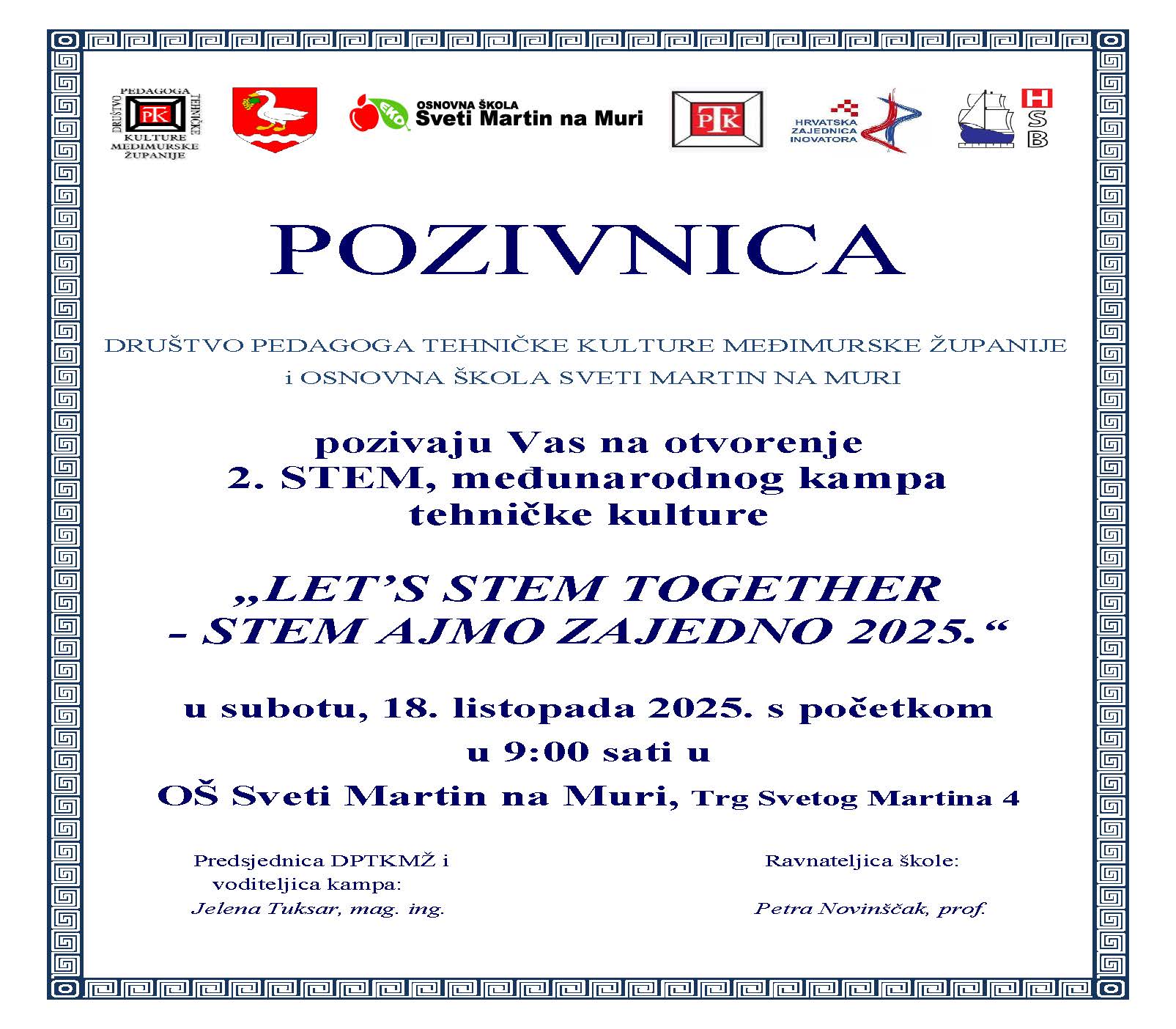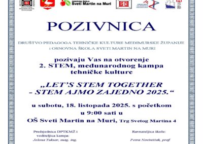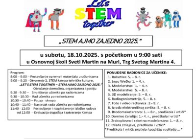Pozivamo sve učenike na sudjelovanje u STEM radionicama koje će se održati u OŠ Sveti Martin na Muri, u subotu 18.10.2025. od 9:00 do 12:00 sati.