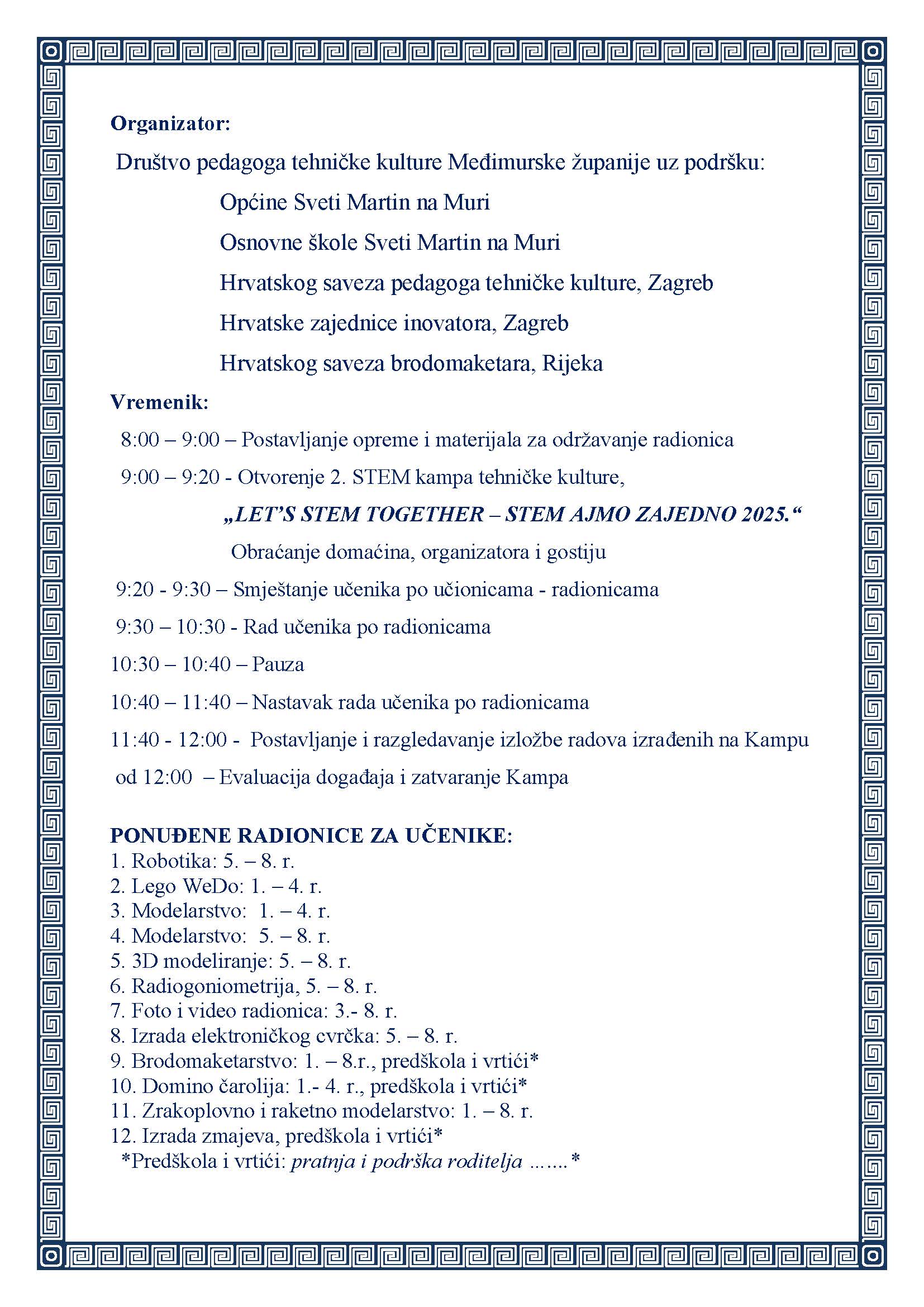 Na raspolaganju su zanimljive i raznolike radionice u sklopu programa STEM AJMO ZAJEDNO koje provodi Društvo pedagoga tehničke kulture Međimurske županije uz podršku Općine i OŠ Sveti Martin na Muri te partnera u projektu.